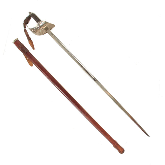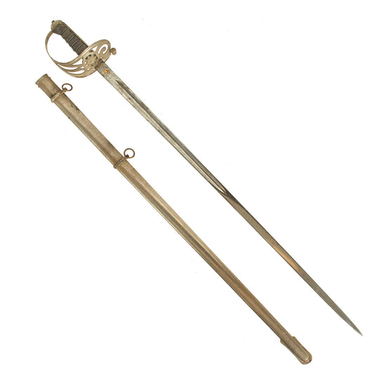 Original British Pre-WWI P-1845 Infantry Regiment Nickel Plated Officer's Dress Sword with Leather-Covered Steel Scabbard & Sword Knot - Edward VII Marked