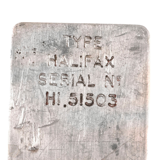 Original British WWII RAF Handley Page Halifax Heavy Bomber Data Plate - HI.51503