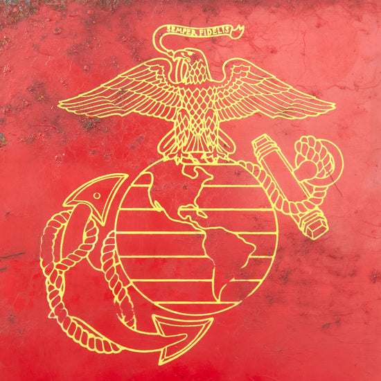 Original U.S. WWII / Korean War Era USMC Marine Corps Recruitment Office Sign - Painted Steel - 6 ½ x 22”