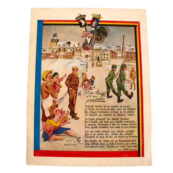 Original U.S. WWII Bastogne Ephemera Grouping with NUTS Poster, Congratulations Letter, and More