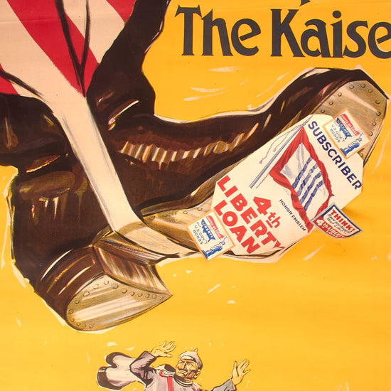 Original U.S. WWI “Help Uncle Sam Stamp Out the Kaiser!” 3rd Liberty Loan Poster with Period-Applied 4th Liberty Loan Stamps - Extremely Rare - 28 x 41”