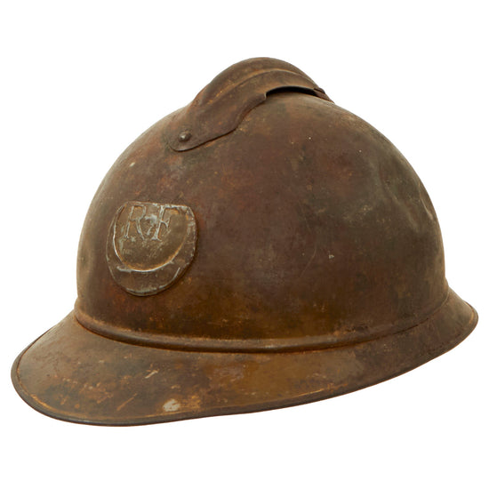 Original Rare French WWI Model 1915 Adrian Helmet Shell with Zouave & Tirailleurs RF Badge and Relic Liner