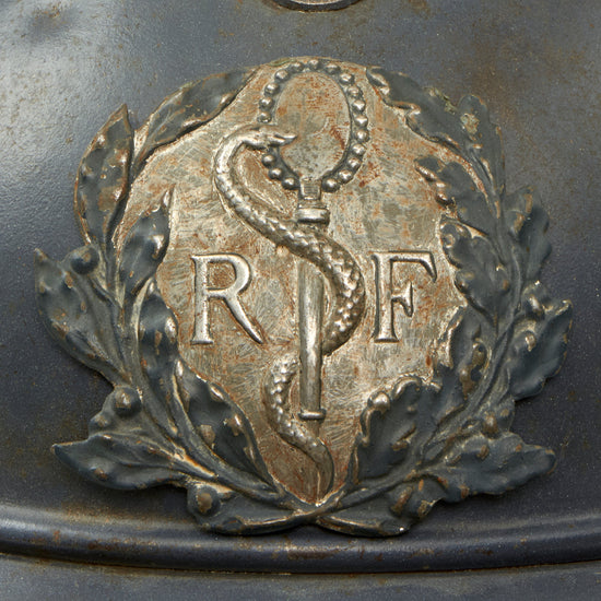 Original French WWI Model 1915 Adrian Helmet Shell with RF Field Medical Personnel Badge - Horizon Blue