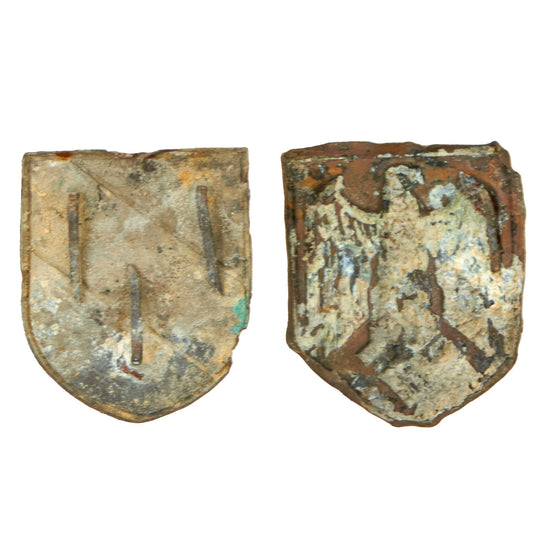 Original German WWII DAK Pith Helmet Emblem Badge Set Excavated in North Africa - Set of National Colors & German Eagle