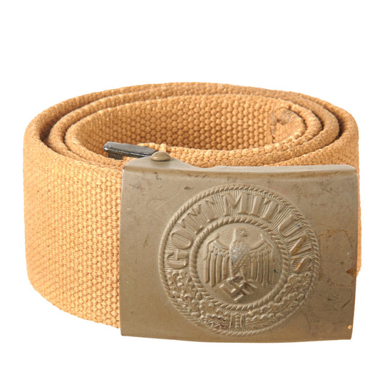 Original German WWII Rare Heer Army Tropical Afrikakorps DAK Web Belt with Painted Steel Buckle
