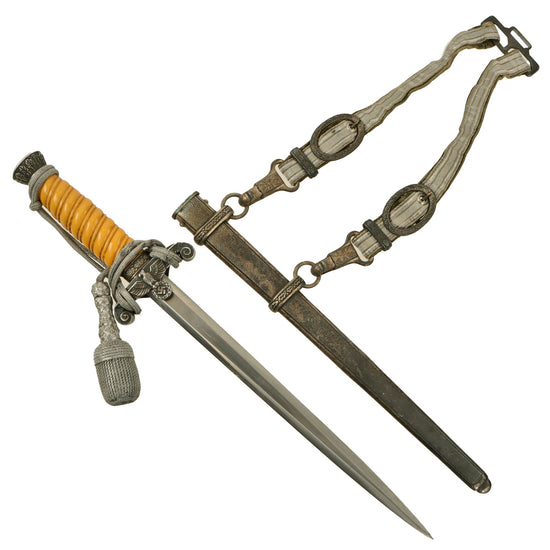 Original German WWII Named Heer Army Officer Dagger with Scabbard, Hanger, and Portepee - Excellent Unmarked Blade