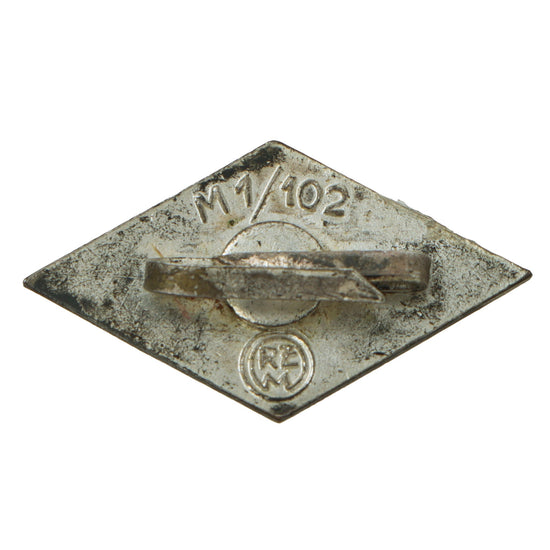 Original German WWII HJ Enamel Cap Badge Insignia by Frank & Reif of Stuttgart - RZM M1/102