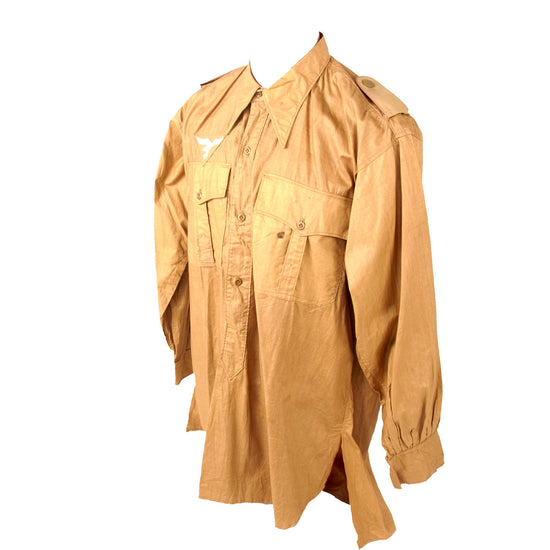 Original German WWII Afrika Korps Luftwaffe Signals Enlisted Man's Tan Tropical Uniform Field Shirt