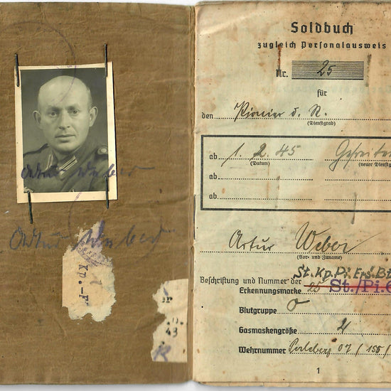 Original German WWII Soldbuch Soldier Identity & Payment Book of Operation Northwind Veteran Gefreiter Artur Weber with Translated Summary