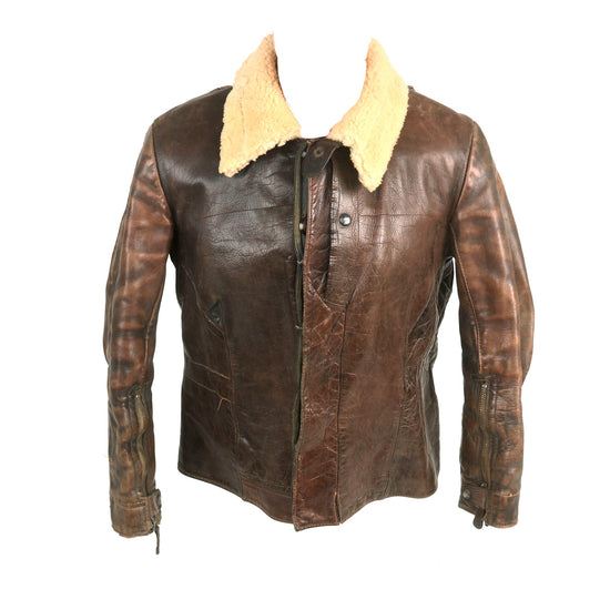 Original German WWII Luftwaffe Pilot's Brown Leather Flight Jacket with Shearling Collar