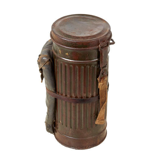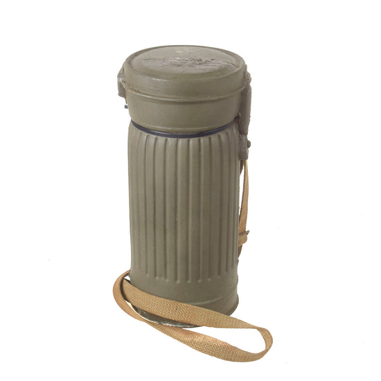 Original German WWII Named M30 2nd Model Size 2 Gas Mask with Fe 42 Filter and Canister with Original Gas Cape & Bag Still Attached - Dated 1943