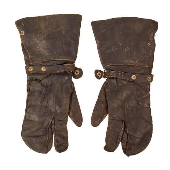 Original German WWII Matched Pair of Luftwaffe Leather Flying Mittens by Matthäus Röder - LBA Marked and Dated 1939