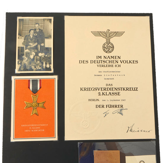 Original German WWII Named War Merit Cross 2nd Class Grouping with Photo, Award Document, Postcard & More on Display Board
