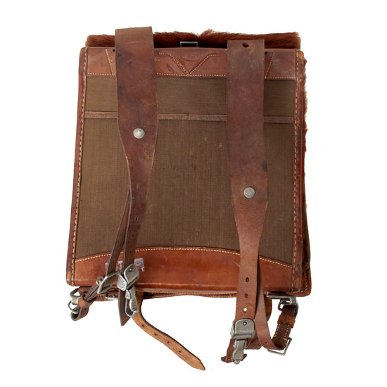 Original German WWII RAD Unit-Marked Tornister 34 Pony Fur Backpack by Walter Ducksch with Shoulder Straps - Dated 1938