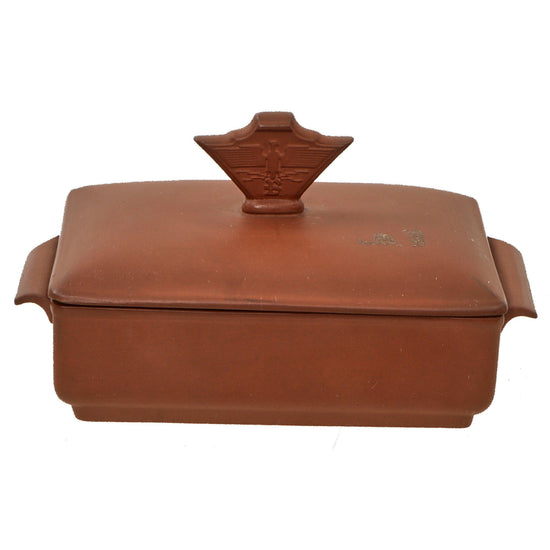Original German WWII Era Böttger Stoneware Lidded Cigarette Box with Eagle Motif - Marked to Bemberg Advertising Dept.