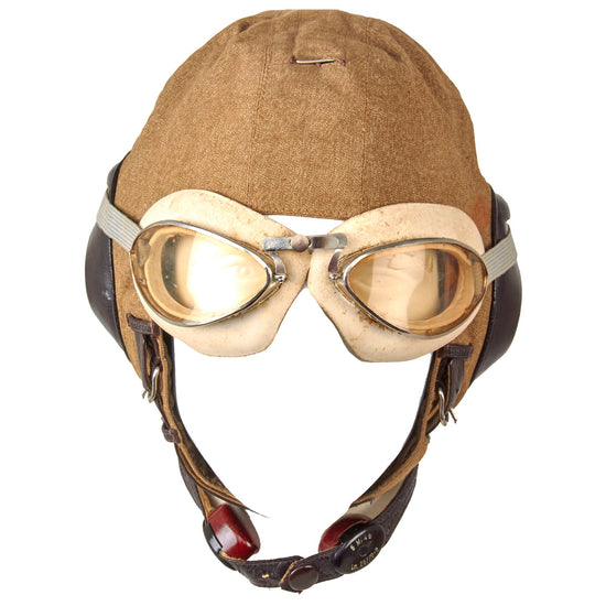 Original WWII German Luftwaffe LKP S101 Summer Pilot Flying Helmet with Avionics & Goggles