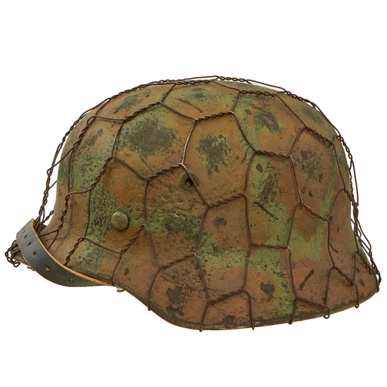 Original German WWII M40 Refurbished SS Battle of Kharkov Chicken Wire Camouflage Helmet - Stamped Q66