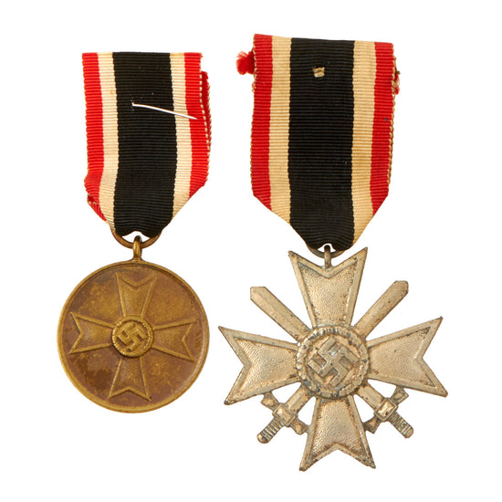 Original German WWII Award and Tinnie Grouping with KvKII with Swords, War Merit Medal, and More - 24 Items