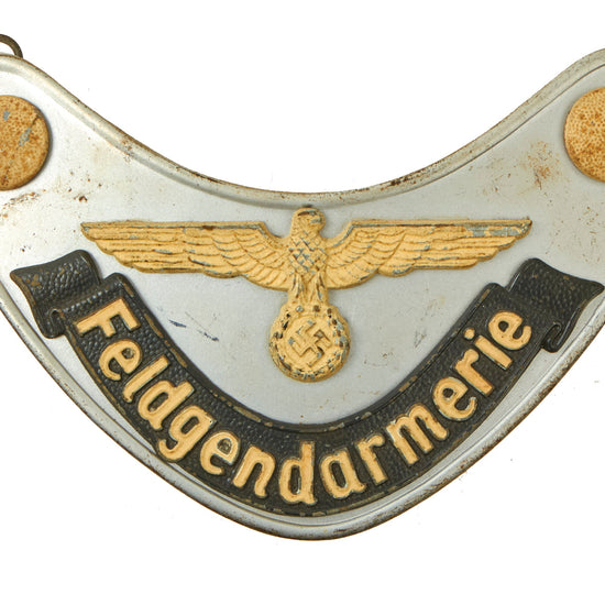 Original German WWII Feldgendarmerie Police Gorget by J.C. Maedicke of Berlin with Phosphorescent Paint and Neck Chain