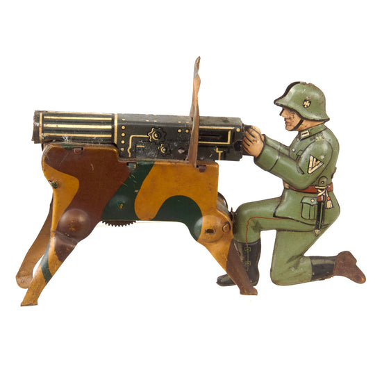 Original German Pre WWII to Occupation Era Children’s Tin Toy Collection with Soldier on MG, Ambulance, and Tanks with Artillery Piece - 5 Items