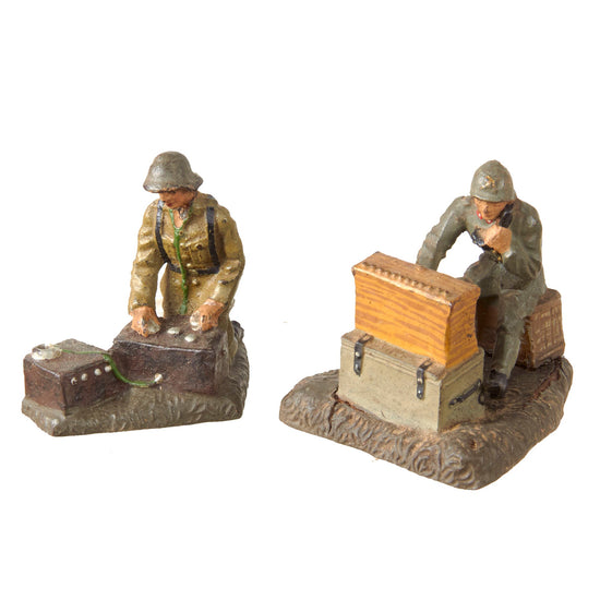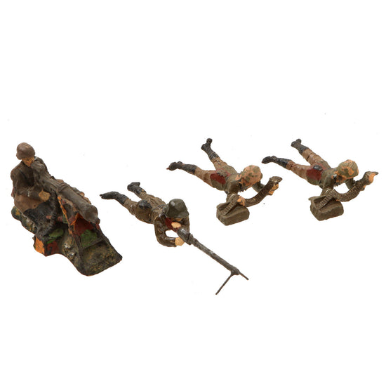 Original German WWII Era Lineol & Elastolin Toy Soldiers with Artillery Piece - Lot of 13 - Machine Gunners and Soldiers