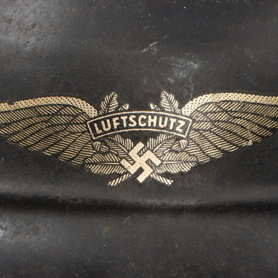 Original German WWII Luftschutz Civil Air Defense Beaded M35 Helmet with Plastic Chinstrap and Liner - Stamped EF66
