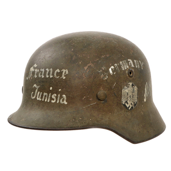 Original German WWII USGI Decorated Heer Army M40 Single Decal Steel Helmet with 1943 Dated 56cm Liner - Stamped Q64
