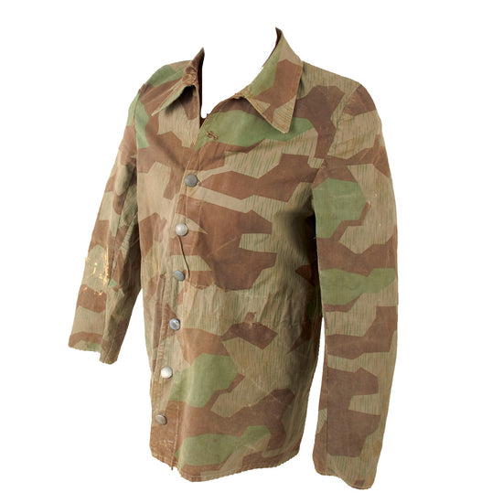 Original German WWII Field Workshop Produced Camouflage Jacket Made From Splinter Pattern Zeltbahn Fabric