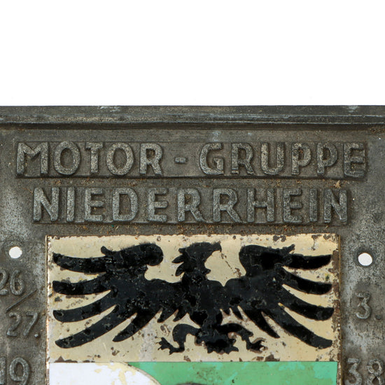 Original German WWII NSKK Motor Group Lower Rhein 1938 Roemryke-Berge Reliability Test Trip Vehicle Plate