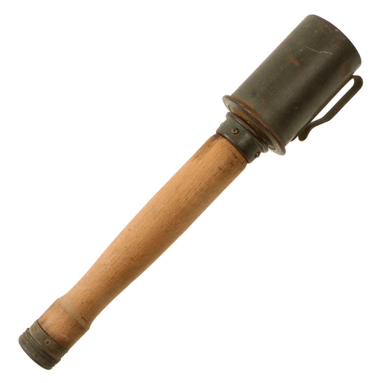 Original German WWI Inert M1915 Poppenberg Percussion Stick Hand Grenade Head & Fittings with Reproduction Wooden Handle- Stielhandgranate