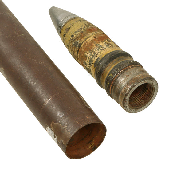 Original German WWII Kriegsmarine Inert 3.7cm Naval Flak Shell - Dated 1942 & 1944