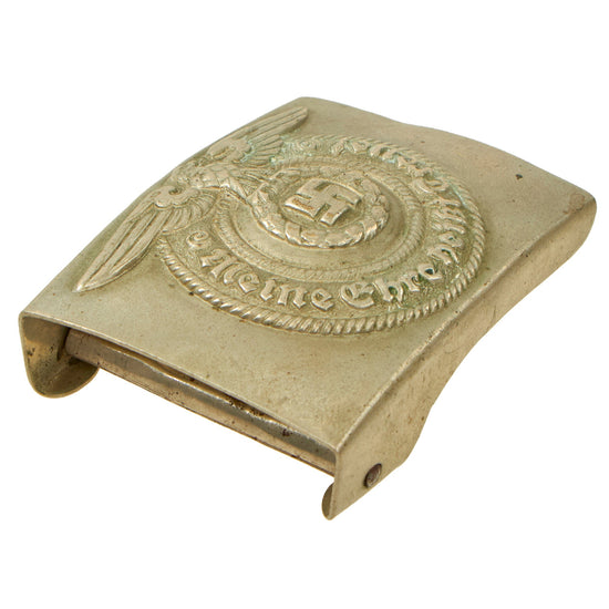 Original German WWII Early SS EM/NCO Nickel Belt Buckle by Overhoff & Cie of Lüdenscheid - Schutzstaffel