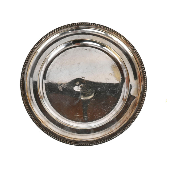 Original Iraq War Saddam Hussein Silver Plated Round Serving Tray with Iraq Coat of Arms - From Basra Airport - Christofle Silver