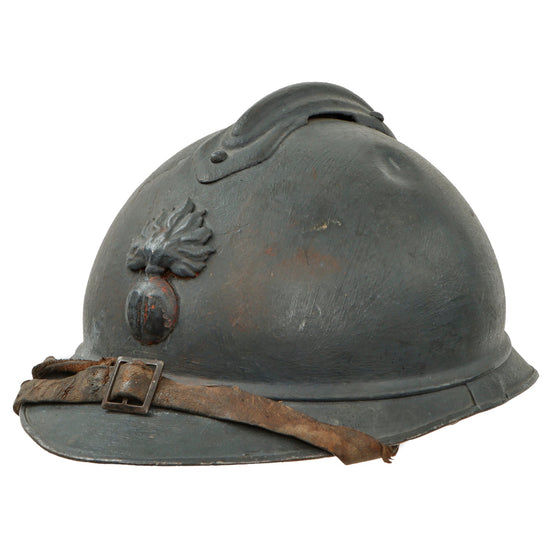 Original French WWI Issue Model 1915 Infantry Adrian Helmet in Horizon Blue with Scarce 1st Pattern Liner & Chinstrap