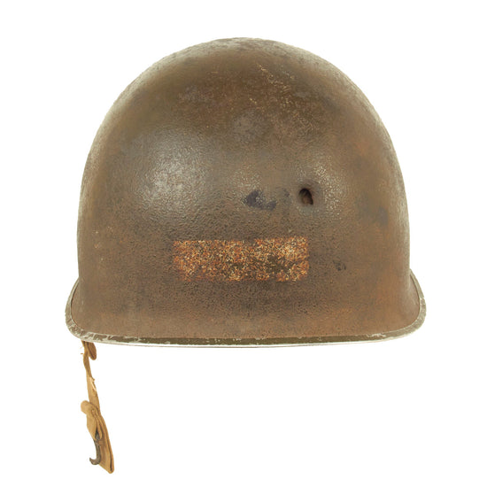 Original U.S. WWII Bullet Struck M1 McCord Front Seam Fixed Bale Helmet with 2nd Infantry Division Painted Westinghouse Liner - Unmatched Set