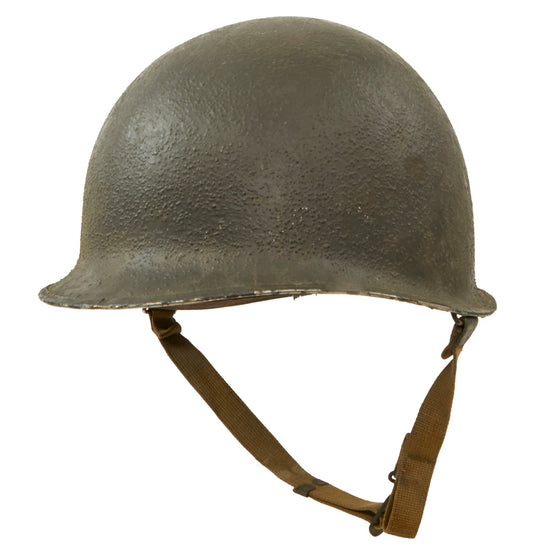 Original U.S. WWII USAAF Bomber Crew M5 Steel FLAK Helmet with Liner and Chinstrap - Great Retained Flocking