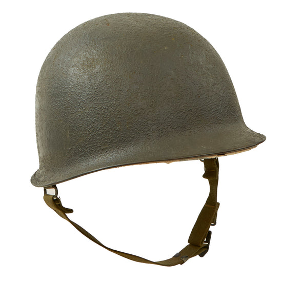 Original WWII U.S. Named Navy Late War Painted Rear Seam Swivel Bale Schlueter M1 Helmet Complete with International Molded Plastics Liner