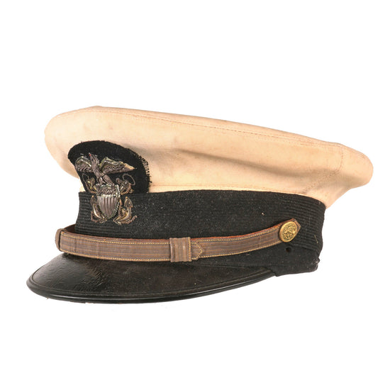 Original U.S. Early WWII Named Navy Officer White Combination Visor Cap - Size 7⅛