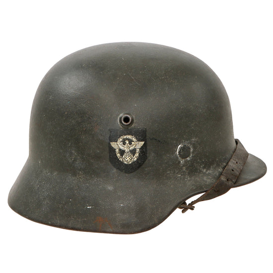 Original German WWII Extra Small Double Decal NSDAP Civic Police M40 Steel Combat Helmet with 1942 Dated 53cm Liner & Chinstrap - Stamped hkp60