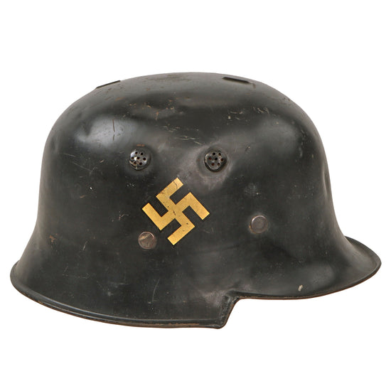 Original German Pre-WWII M34 Square Dip First Pattern Fire Protection Police Helmet with Double Decals - Removed Comb