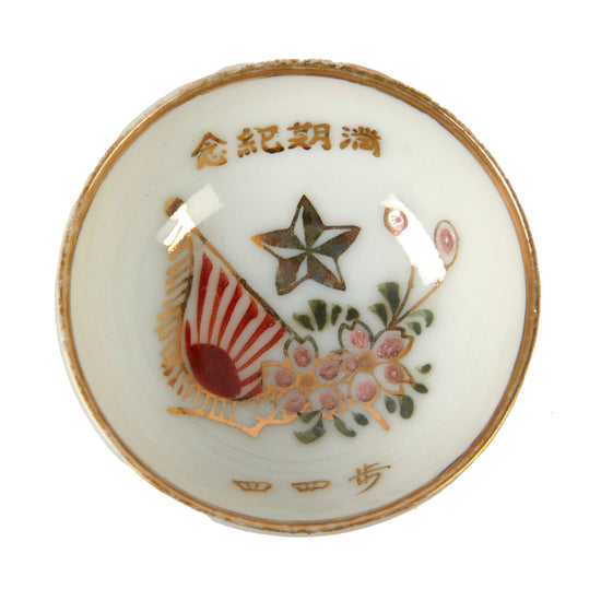 Original Imperial Japanese WWII Sake Cup Lot Featuring Rising Sun Flags - 6 Items