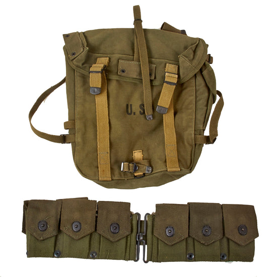 Original U.S. WWII & Korean War Era G.I. Field Gear Lot Featuring M1923 USMC Cartridge Belt & M1911 Pouches with Magazines - 12 Items