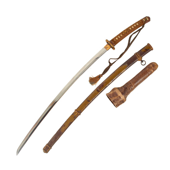 Original WWII Japanese Type 98 Shin-Gunto Katana with Handmade Edo Period Blade, Leather Handle Cover, Steel Scabbard, and Company Grade Tassel