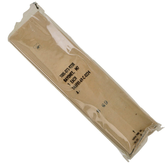 Original U.S. Unissued M7 Bayonet for M16 Rifle with M8A1 Scabbard in Original Sealed Packaging - Repacked in March 1977