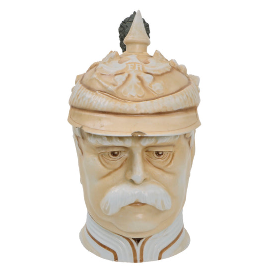 Original Imperial German WWI Era Portly Character Helmuth Von Moltke the Elder Stein with Hinged Lid by Musterschutz with Period Inscription Under Visor