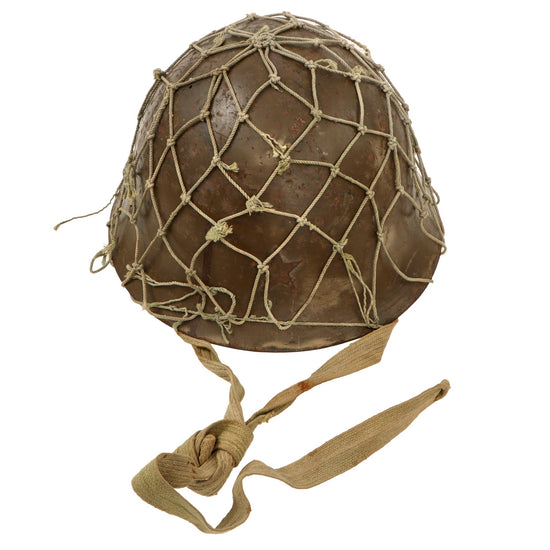 Original Japanese WWII Type 90 Army Helmet with Complete Liner and Correct Japanese Issue Helmet Net by Kobe Steel - Size Small - Untouched Condition