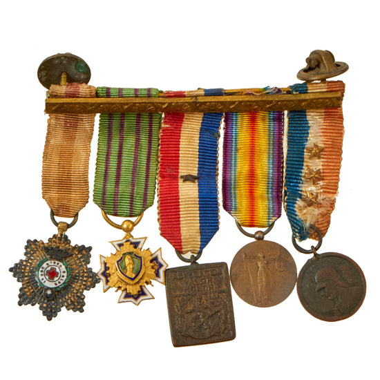 Original Cuban WWI & WWII Army Miniature 5-Medal Bar with WWI Victory Medal & Long Service Medal with 3 Stars
