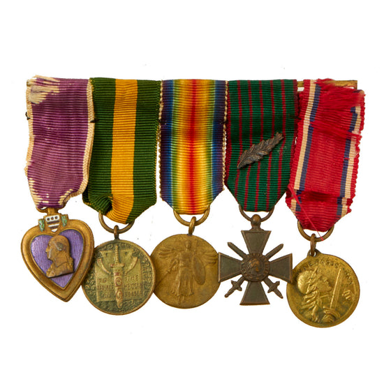 Original U.S. WWI 26th “Yankee” Division Army Field Clerk Purple Heart Medal Group with Extremely Scarce French-Made U.S. Victory Medal with Meuse-Argonne Bar