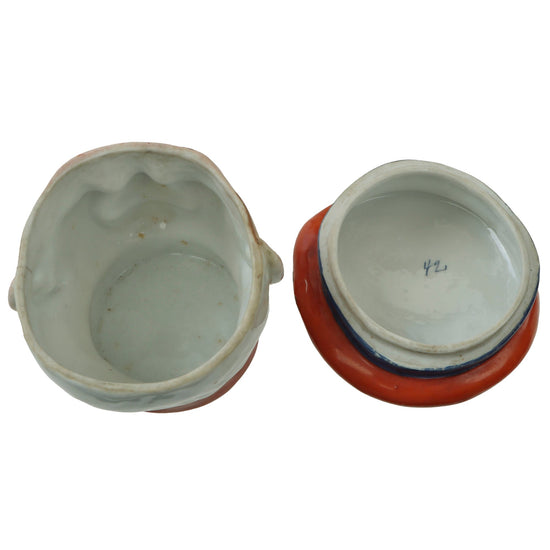 Original Imperial German Pre-WWI Dunkelblau Soldier Porcelain Candy Dish with Feldmütze Lid