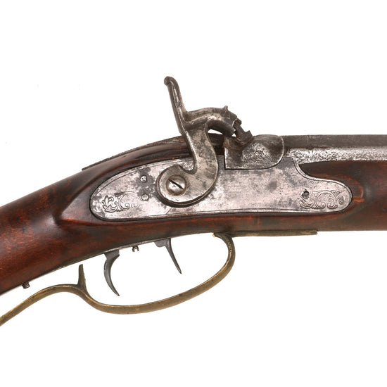 Original 19th Century Austrian Rifled Percussion Overcoat Pistol with Liège Proofed Barrel and Carved Wooden Stock - Circa 1840